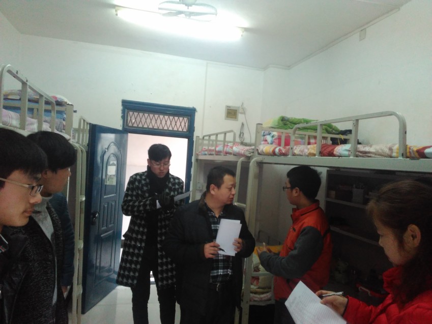 (通讯员:王俐凤、孔鹏)1月8日下午,汽车工程系党总支副书记梁军萍、张勇和学工办主任李路带领十星级文明宿舍评审工作小组成员,深入员工宿舍,对经过“自愿申报、系员工会例行检查、辅导员核实”等程序筛选的22个“十星级文明”申报宿舍进行检查。